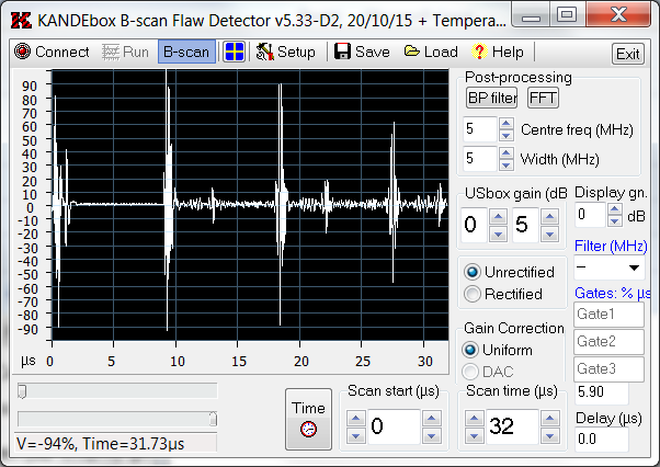 KANDE developed USBox monitoring software turns inexpensive hardware such as Lecoeur Electronique’s USBox/USKey or OPTEL’s Opbox into highly capable measurement systems for long-term ultrasonic monitoring applications, with capabilities including: recording and logging of A-scan, B-scan and temperature data at programmable intervals, or at user defined temperature set-points, for periods of anything up to months or even years.
